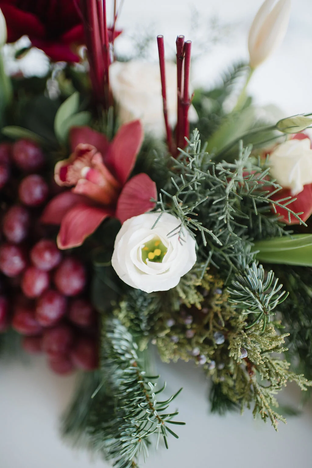 Works best: As a centerpiece for a long table, or a a great winter-inspired arrangement for a gift for family, friend, or client.